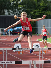 Im vergangenen Jahr sammelte Jakob noch Erfahrungen bei den Landesmeisterschaften, als er als 13-Jähriger in der M14 hochstartete. Diese Erfahrungen durften dieses Jahr Alina Schlegel und Ole Roßmannek machen, allerdings nicht über die Mitteldistanz, sondern im Sprint und im Weitsprung. Beide zeigten sich ebenfalls in guter Verfassung und legten im 100-m-Vorlauf in 13,83 Sek. bzw. 13,97 Sek. gute Rennen hin. Alina erreichte sogar das Halbfinale, in dem sie sich nochmals auf 13,91 Sek. verbesserte. Bei der M14 fielen die Halbfinals aus, so dass für Ole nach dem Vorlauf leider Schluss war.