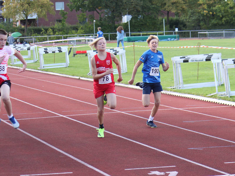 Im Rahmen eines Abendsportfestes trug der TuS Wunstorf die Kreismeisterschaften über 800 m aus. Erwartungsgemäß verteidigte Jakob Knublauch (M14) seinen Titel vom Vorjahr, war jedoch mit seinem Rennen nicht sonderlich zufrieden. Vor allem der starke Wind machte ihm zu schaffen. Mit 2:25 Min. blieb er fünf Sekunden über seiner Bestleistung, die er im Februar als Drittplatzierter bei den Landeshallenmeisterschaften gelaufen war.