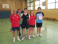 Am Ende des Tages standen dann aber auch die Sieger fest. Bei den Herren gewann der favorisierte Niklas Otto. Allerdings musste er im Endspiel einen 0:2 Satzrückstand gegen den zweitplatzierten Claas Märtens aufholen. Platz drei teilten sich Markus Schulze und Spartenleiter Philipp Schütze. Um die in der Gruppenphase ausgeschiedenen Spieler bei Laune zu halten, wird seit einigen Jahren auch immer eine Trostrunde organisiert. Hier konnte Frank Senger die Konkurrenz hinter sich lassen. Maren Helm siegte bei den Damen vor Vera Huser und Christiane Herrnleben.