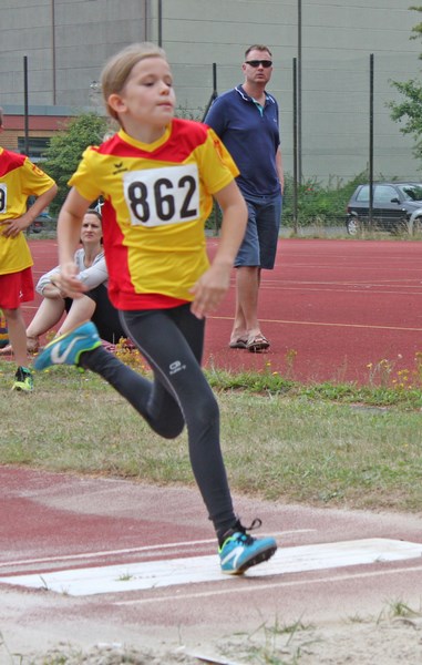 Am Ende durfte Melissa Wallentowitz (W09) beim Dreikampf in Edemissen doch noch über einen Sieg jubeln: Nachdem sie Bestzeit über 50 m in 8,75 Sek. gerannt war, knickte sie um und ging gehandicapt zum Weitsprung. Dort gelang ihr zwar mit 3,14 m ein passabler Versuch, jedoch verlor sie einige Punkte, so dass sie nach diesen beiden Disziplinen in der Gesamtwertung auf Rang vier lag – mit knapp 70 Punkten Rückstand auf die Führende. Mit dem Schlagball lief sie allerdings noch mal zur Höchstform auf und übertraf im letzten Versuch mit 30,5 m alle Erwartungen und setzte sich mit 1039 Punkten an die Spitze der Konkurrenz. Freuen durfte sich auch Alina Dannenberg, die sich mit dem Schlagball (18 m) deutlich verbessert zeigte, im Weitsprung auf 3,09 m kam und 8,90 Sek. sprintete. Für sie sprang Rang fünf heraus. Bei den gleichaltrigen Jungen gab Kilian Hervatin sein Wettkampfdebüt. Dabei gefiel er besonders im Sprint (9,31 Sek.) und mit dem Schlagball (22 m).