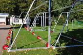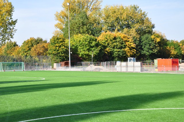 Zum Ende der ersten Oktoberwoche ist auch der Ballfangzaun auf der Westseite des Platzes fertiggestellt worden. Darüber hinaus sind auch die Arbeiten für die vorgesehenen Barrieren auf der Nord- und Westseite der neuen Sportfläche weitestgehend zum Ende gekommen. Ein Ballfangzaun auf der Ostseite des Platzes konnte vorerst noch nicht in Auftrag gegeben werden, da hierfür die momentan zur Verfügung stehenden Finanzmittel des Vereins nicht mehr ausreichen. Die Hoffnung auf weiterhin eingehende Spendengelder zur Realisierung dieses letzten Bausteins wird aber nicht aufgegeben.