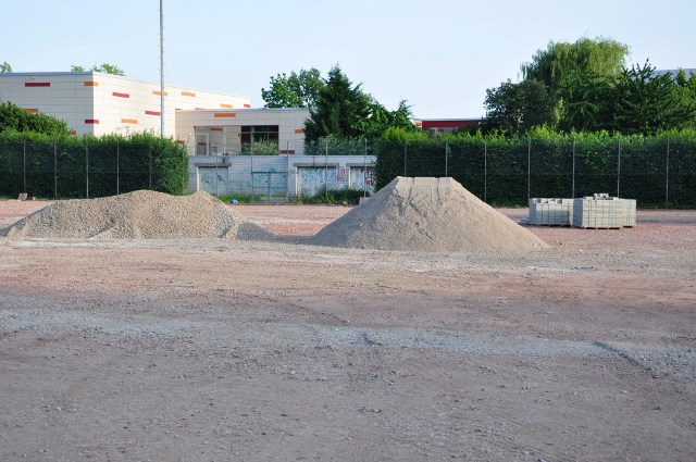 Ebenfalls in der ersten Oktoberwoche ist mit den Vorbereitungen für die vorgesehenen Pflasterungen im Eingangsberich des neuen Sportplatzes begonnen worden. Mit dieser Pflasterung soll sichergestellt werden, dass die Sportler beim Betreten des Platzes keinen Schmutz auf die neue Spielfläche tragen.
